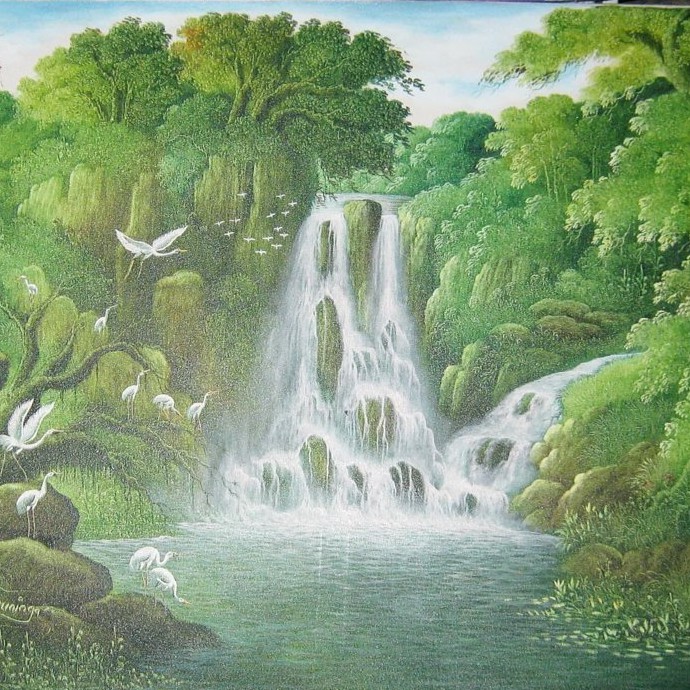 Gambar Lukisan Air Terjun Yang Mudah - 18 Contoh Gambar Pemandangan Air Terjun Yang Mudah Broonet